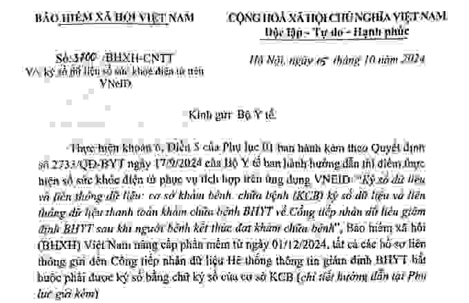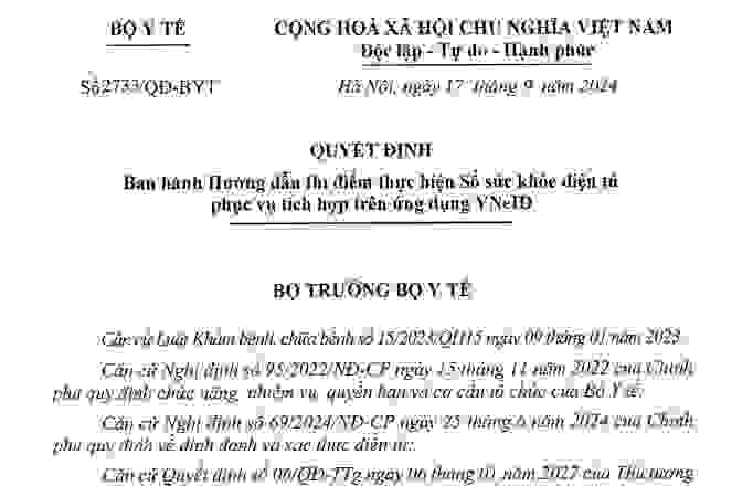 16. Quyết định số 3167/QĐ-BYT ngày 29/10/2024 sửa đổi, bổ sung Quyết định số 4750/QĐ-BYT ngày 29/12/2023 của Bộ Y tế sửa đổi, bổ sung Quyết định số 130/QĐ-BYT ngày 18/01/2023 Quy định chuẩn và định dạng dữ liệu đầu ra phục vụ việc quản lý, giám định, thanh toán chi phí khám bệnh, chữa bệnh và giải quyết chế độ liên quan (Có hiệu lực từ ngày 01/01/2025)