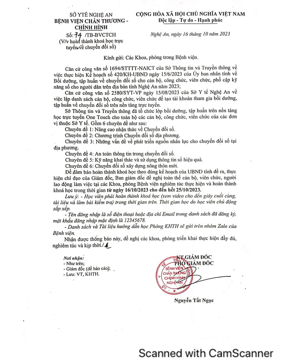 Căn cứ công văn số 1694/STTTT-NAICT của Sở Thông tin và Truyền thông về việc thực hiện Kế hoạch số 420/KH-UBND ngày 15/6/2023 của Ủy ban nhân tỉnh về Bồi dưỡng, tập huấn về chuyển đổi số cho cán bộ, công chức, viên chức, phổ cập kỹ năng số cho người dân trên địa bàn tỉnh Nghệ An năm 2023.