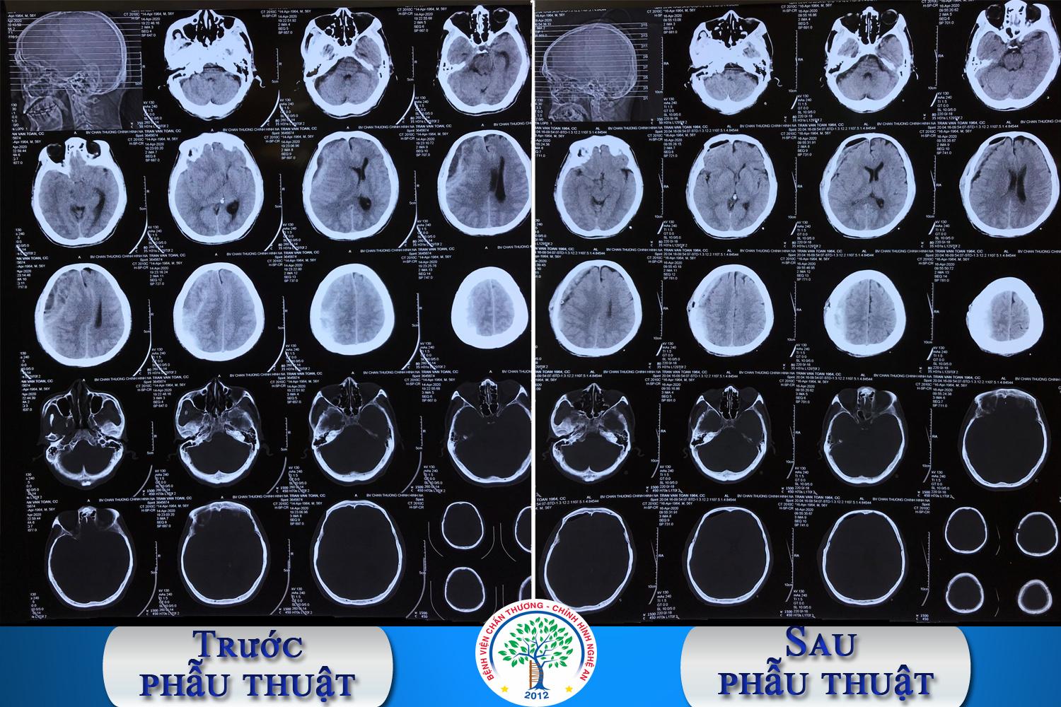 Sau khi hội chẩn bệnh nhân được chỉ định mổ dẫn lưu máu tụ dưới màng cứng của ổ máu tụ mạn tính. Ca mổ được tiến hành thành công bởi kíp mổ do Thạc sĩ, Bác sĩ Trần Văn Biên – Trưởng khoa PTTK-SN-CS làm bác sĩ phẫu thuật . 1 ngày sau mổ, bệnh nhân tỉnh táo, nói chuyện được, đau đầu ít, hai chân vận động tốt, vết mổ khô, ăn uống được, dịch dẫn lưu lượng ít. Khoảng 4 ngày sau mổ, bệnh nhân đã có thể tự đứng dậy đi lại trong khung tập đi.