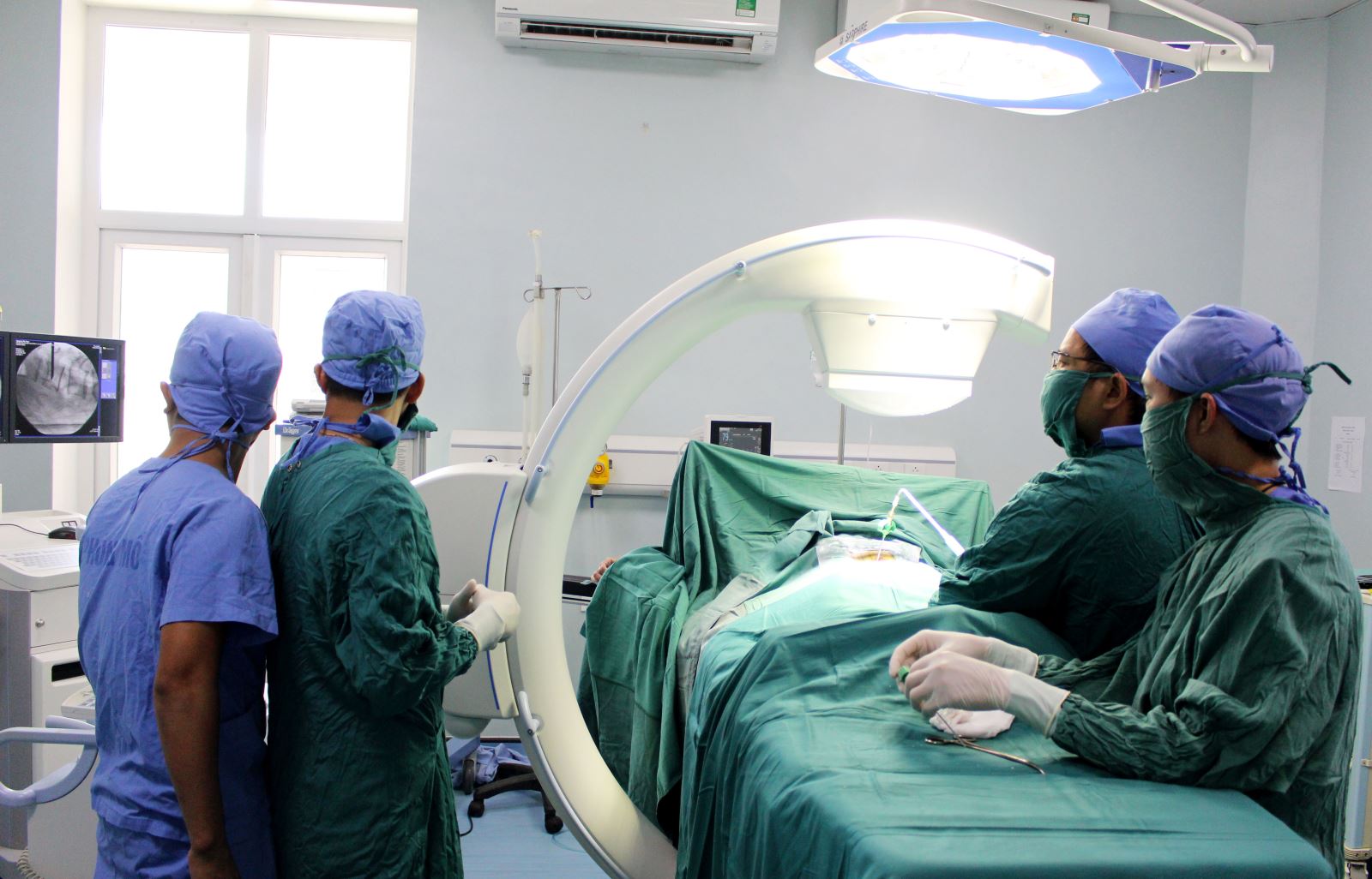 Sau khi hội chẩn, bệnh nhân được chỉ định phẫu thuật tạo hình thân đốt sống bằng cement sinh học qua da. Ca phẫu thuật được thực hiên thành công bởi Thạc sĩ, Bác sĩ Trần Văn Biên – Trưởng khoa PTTK-SN-CS và các cộng sự. 1 ngày sau mổ, bệnh nhân đã đỡ đau hoàn toàn, chỉ còn đau nhẹ vết mổ và có thể đi lại bình thường.